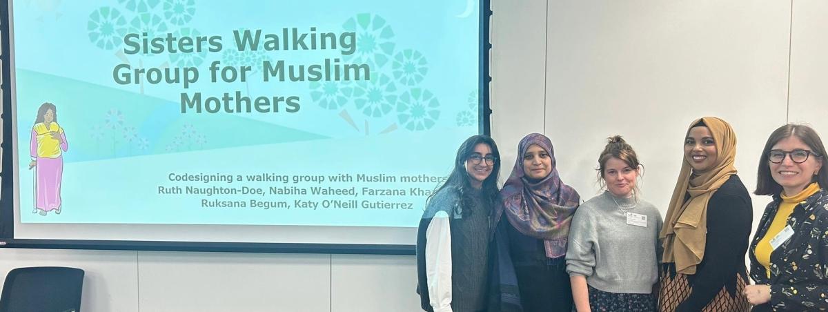 As part of the Perinatal Quality Network Annual Forum at the Royal College of Psychiatrists in November, 2025, part of the research team (Ruth Naughton-Doe, Nabiha Waheed, Farzana Khanom, Ruksana Begum and Katy O'Neill Gutierrez) presented our work on co-designing a culturally informed walking group for Muslim mothers. The forum provided an opportunity to share how community-based approaches can help address barriers to accessing perinatal mental health support.